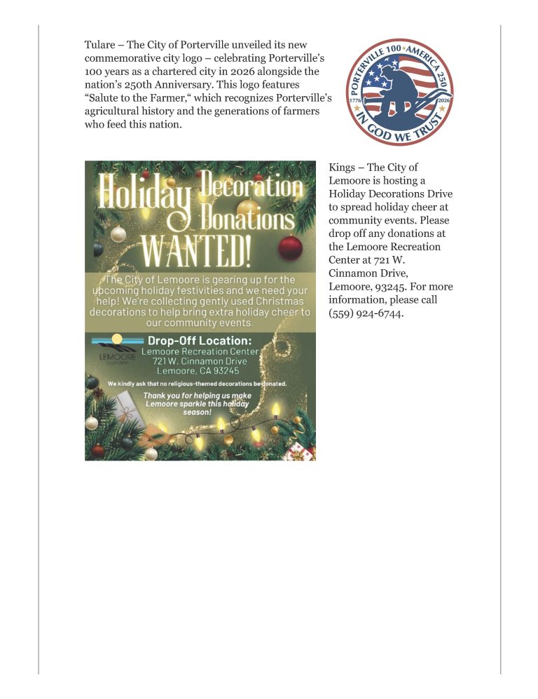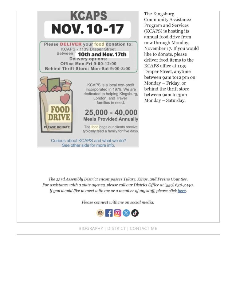 The 33rd Assembly District encompasses Tulare‚ Kings‚ and Fresno Counties. For assistance with a state agency‚ please call our District Office at (559) 636-3440. If you would like to meet with me or a member of my staff‚ please click here.