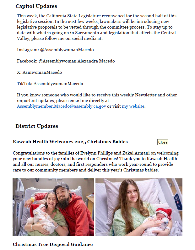 The 33rd Assembly District encompasses Tulare‚ Kings‚ and Fresno Counties. For assistance with a state agency‚ please call our District Office at (559) 636-3440. If you would like to meet with me or a member of my staff‚ please click here.