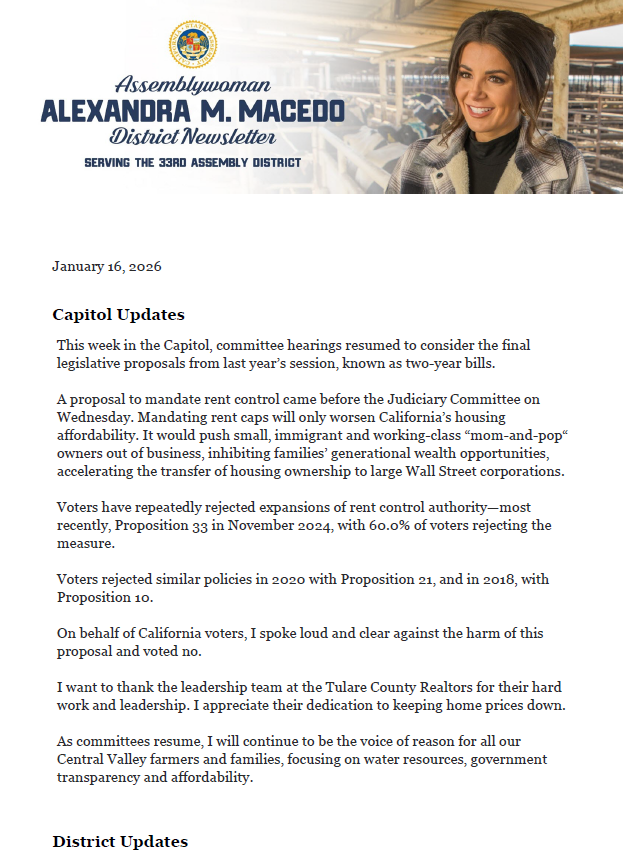 Assemblywoman Alexandra M. Macedo – District Newsletter, January 16, 2026