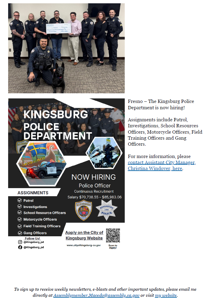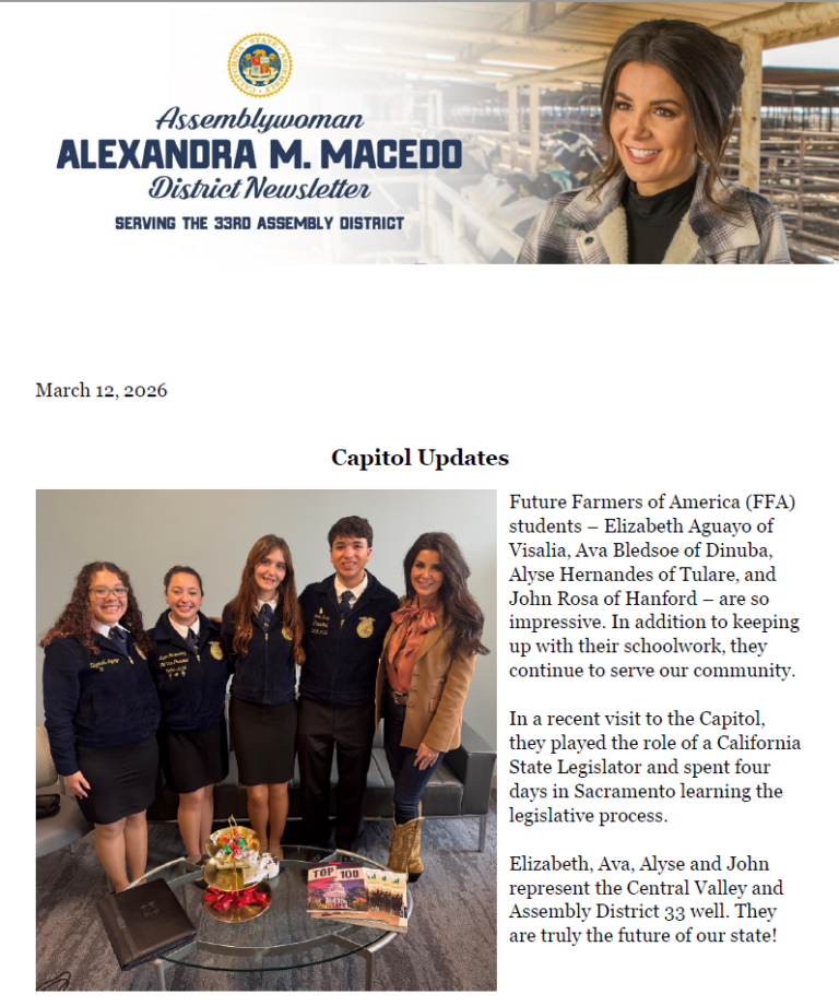 Elizabeth‚ Ava‚ Alyse and John represent the Central Valley and Assembly District 33 well. They are truly the future of our state!